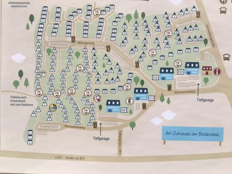 Weitläufige kinderfreundliche Ferienanlage "Ferienwohnpark Immenstaad", umgeben von Wiesen. Am Ortsrand, 2 km vom Zentrum, 800 m vom See. Zur Mitbenutzung: Kinderspielplatz. In der Anlage: Empfang, Waschmaschine (extra), Wäschetrockner (zur Mitbenutzung, extra). Zentralparkplätze. Lebensmittelgeschäft 100 m, Supermarkt 100 m, Restaurant 50 m, Bushaltestelle 50 m, Bahnstation "Friedrichshafen" 7 km, Freibad 4 km, Hallenbad 4 km, Strandbad 4 km. Nahe gelegene Sehenswürdigkeiten: Abenteuerpark Immenstaad, Pfahlbauten Uhldingen, Zeppelinmuseum Friedrichshafen, Schloss Salem, Affenberg. Bekannte Seen in der Umgebung sind gut erreichbar: Bodensee. Wandergebiete: Bodenseegebiet. Bitte beachten: autofreie Ferienanlage. Das Foto ist nur ein Hausbeispiel. Alle Häuser/Wohnungen sind individuell eingerichtet. Der Ferienwohnpark besteht aus mehrgeschossigen Appartementhäusern sowie Ferienhäusern in Holzbauweise, die über eigene Grünflächen verfügen. In den Monaten Juli/August bietet die Gemeinde Immenstaad ein Ferienprogramm für Kinder an (extra). BITTE BEACHTEN: Katzen als Haustiere sind nicht erlaubt.