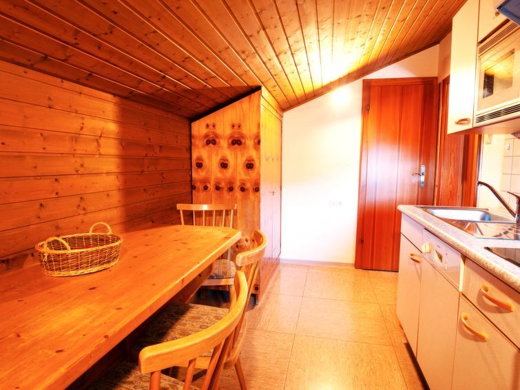 "Dachstein", 3-Zimmer-Wohnung 60 m2 im 2. Stock. Rustikal und gemütlich eingerichtet: Eingang. Wohn-/Schlafzimmer 16 m2 mit 1 Doppeldiwanbett, Dusche/WC und Kabel-TV. Ausgang zum Balkon. 1 Doppelzimmer 12 m2 mit 1 Doppelbett (180 cm, Länge 200 cm), Dusche/WC. 1 Doppelzimmer 16 m2 mit 2 Betten (90 cm, Länge 200 cm), Dusche/WC und E-Heizung. Kleine Küche 8 m2 (2 Kochplatten, Backofen, Geschirrspüler, elektrische Kaffeemaschine). Grosser Balkon. Balkonmöbel. Sehr schöne Sicht auf die Berge und die Landschaft. Parkplatz. Bitte beachten: Nichtraucher-Unterkunft, Nichtraucher-Haus. 1 Haustier/Hund erlaubt. 50407-000144-2020