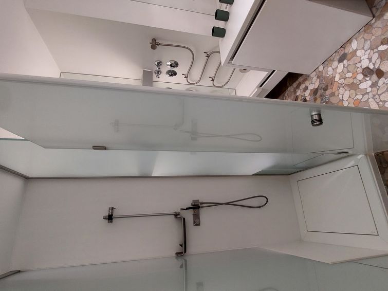 2-Zimmer-Wohnung 70 m2 im 3. Stock. Sehr modern und stilvoll eingerichtet: Eingang. Wohn-/Esszimmer mit 1 Ausziehbett (2 Pers. 2 x 80 cm, Länge 200 cm), Esstisch und Flachbildschirm. 1 Doppelzimmer mit Ventilator. Offene Küche (Backofen, Geschirrspüler, 4 Glaskeramikplatten, Toaster, Wasserkocher, Mikrowelle, Tiefkühler, elektrische Kaffeemaschine, Kapseln für die Kaffeemaschine (Nespresso)) mit kleiner Bar. Dusche/WC. Parkettboden. Zur Verfügung: Waschmaschine, Bügeleisen, Haartrockner. Internet (WLAN, gratis). Bitte beachten: Nichtraucher-Unterkunft. Check In: 16.00 bis 20.00 Uhr (spätere Anreise gegen Kostenersatz möglich) . Check out: bis 10.00 Uhr.