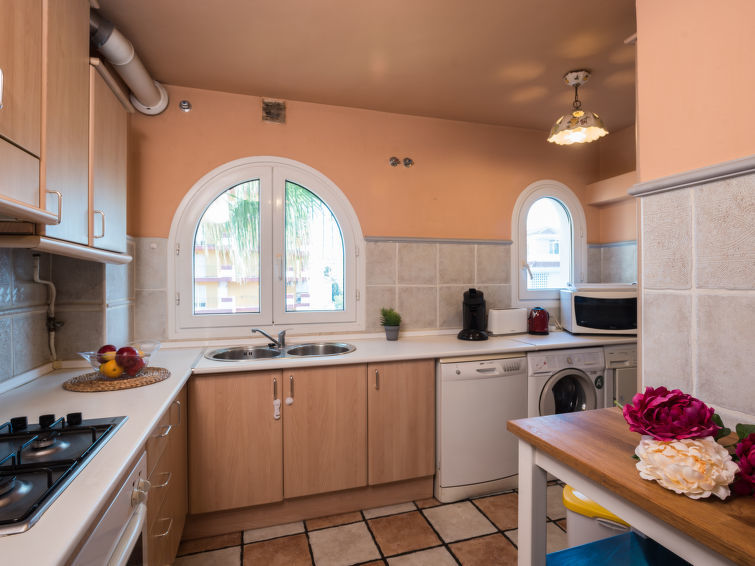 5-Zimmer-Attikawohnung 100 m2 auf 2 Stockwerken im 3. Stock. Objekt geeignet für 5 Erwachsene + 2 Kinder. Geräumig, schön und modern eingerichtet: Wohn-/Esszimmer mit TV (Flachbildschirm), Klimaanlage und Warmluftheizung. Ausgang zum Balkon. 1 Doppelzimmer mit 2 Betten (90 cm). 1 Doppelzimmer mit 1 franz. Bett (180 cm), Bad/WC. Küche (4 Kochplatten, Backofen, Geschirrspüler, Mikrowelle, elektrische Kaffeemaschine). Sep. WC. Obergeschoss: 1 Doppelzimmer mit 1 Bett (90 cm), 1 franz. Bett (135 cm). Wohn-/Esszimmer mit 1 Diwanbett (140 cm, Länge 200 cm), Klimaanlage und Warmluftheizung. Ausgang zur Terrasse. Bad/WC. Balkon. Balkonmöbel. Panoramasicht auf das Schwimmbad und den Garten. Zur Verfügung: Waschmaschine, Bügeleisen, Babybett, Haartrockner. Internet (WLAN, gratis). Parkplatz Nr. 35. Geeignet für Familien. VUT/MA/01455 // Reg. Nr.: ESFCTU0000290210002358390000000000000000VUT/MA/014552
