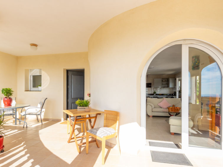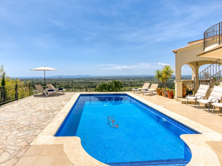 5-Zimmer-Villa 224 m2 auf 2 Stockwerken. Geräumig und hell, komfortabel und stilvoll eingerichtet: Wohn-/Esszimmer 39 m2 mit Sat-TV. Ausgang zur Terrasse, zum Schwimmbad. 1 Zimmer 15 m2 mit 1 franz. Bett (160 cm, Länge 190 cm), Dusche/WC, Klimaanlage und Warmluftheizung. Ausgang zur Terrasse. 1 Zimmer 11 m2 mit 1 franz. Bett (150 cm, Länge 190 cm), Klimaanlage und Warmluftheizung. 1 Zimmer mit 2 Betten (90 cm, Länge 190 cm), Klimaanlage und Warmluftheizung. Offene Küche (Backofen, Geschirrspüler, 3 Induktionskochplatten, Toaster, Wasserkocher, Mikrowelle, Tiefkühler, elektrische Kaffeemaschine) mit Esstisch. Bad/WC. Obergeschoss: (Aussentreppe) 1 Zimmer mit 1 franz. Bett (150 cm, Länge 190 cm), Dusche/WC, Klimaanlage und Warmluftheizung. Ausgang zur Terrasse. Grosse Terrasse. Terrassenmöbel, Gartengrill, Liegestühle. Herrliche Panoramasicht auf das Meer und die Berge. Zur Verfügung: Waschmaschine, Bügeleisen, Haartrockner. Internet (WLAN, gratis). Parkplatz (3 Autos) beim Haus. Bitte beachten: ein Doppelzimmer liegt außerhalb der Wohnung. Nichtraucher-Haus. TV nur DE, FR, ES. Kein Fahrstuhl. HUTG-064538 // Reg. Nr.: ESFCTU00001700800097820600000000000000000HUTG-0726257
