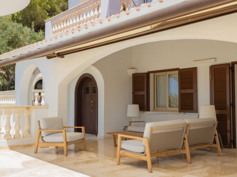 Son Bou: Belle villa accueillante, confortable "Villa Maitreya", de 2 étages. Au centre de San Jaime, situation surélevée quartier résidentiel, à 500 m de la mer, à 500 m de la plage. A usage privé: jardin propice à la détente, piscine rectangulaire (10 x 6 m, profondeur 150 cm, disponibilité saisonnière: 01.Mai. - 31.Oct.). Douche extérieure, jardinet, tonnelle, pergola, meubles de jardin, barbecue. Infrastructures de la Maison: accès internet, Connexion WIFI, bain à remous , air-conditionné, système d'alarme, lave-linge, sèche-linge. Parking public possible dans la rue. Magasins, magasin d'alimentation, supermarché, restaurant, bar, café 600 m, arrêt de bus "Carrer del Prat" 400 m, plage de sable "Son Bou" 500 m. Veuillez noter: voiture recommandée. Équipement pour bébés sur demande (inclus). Bien convenant à 12 adultes. Le propriétaire n'accepte pas les groupes de jeunes. Aéroport 20 km de la maison.