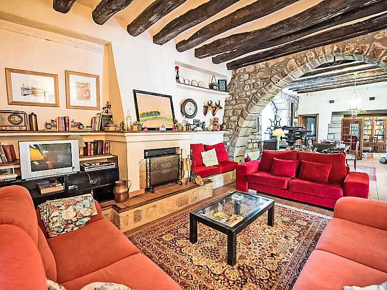 "Can Trullas", maison 5 pièces 200 m2 sur 2 niveaux. Aménagement rustique: entrée 20 m2 avec Télévision numérique. Séjour avec TV. Sortie sur le jardin. 1 chambre avec 2 lits (90 cm, longueur 190 cm). Sortie sur le jardin. Cuisine/séjour (4 plaques de cuisson, four, lave-vaisselle, micro-ondes, congélateur, cafetière électrique). Bain/bidet/WC. Pas de chauffage. À l'étage supérieur: 1 chambre avec 1 lit double (180 cm, longueur 190 cm), bain/bidet/WC. 1 chambre avec 2 lits (90 cm, longueur 190 cm). 1 chambre avec 1 lit double (180 cm, longueur 190 cm). Sortie sur la terrasse. Bain/bidet/WC. Grande terrasse 40 m2, jardinet 500 m2. Meubles de terrasse, chaises longues (6). Vue sur les montagnes et la forêt. A disposition: lave-linge. Internet (Connexion WIFI, gratuit). Maximum 1 animal/ chien autorisé. HUTB005785