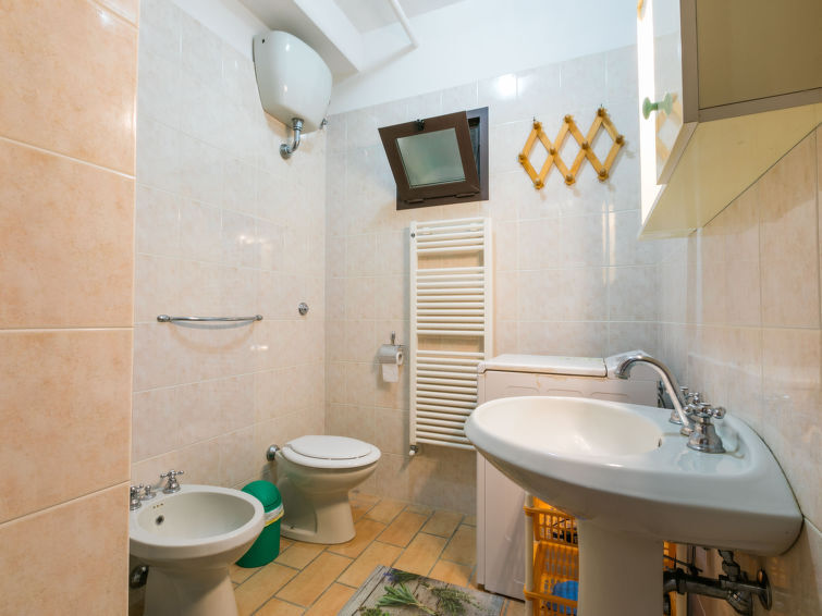"Levante", apt 3 pièces 65 m2, au rez-de-chaussée. Aménagement agréable et de bon goût: séjour/salle à manger. 1 chambre double. 1 chambre avec 2 lits. Cuisine ouverte (Poêle à gaz, 4 feux, grille-pain, bouilloire électrique, cafetière électrique) avec table pour les repas. Douche/bidet/WC. Chauffage au gaz (en sus). Grand jardinet 25 m2, partiellement couvert. Meubles de terrasse, barbecue, chaises longues (2). Belle vue sur les alentours. A disposition: lave-linge, fer à repasser, moustiquaire, chaise haute pour enfant, lit bébé jusqu'à 2 ans, sèche-cheveux. Internet (Connexion WIFI, gratuit). Veuillez noter: maximum 2 animaux/ chiens autorisés. Entrée privée. IT049001B5LV2C3KD4