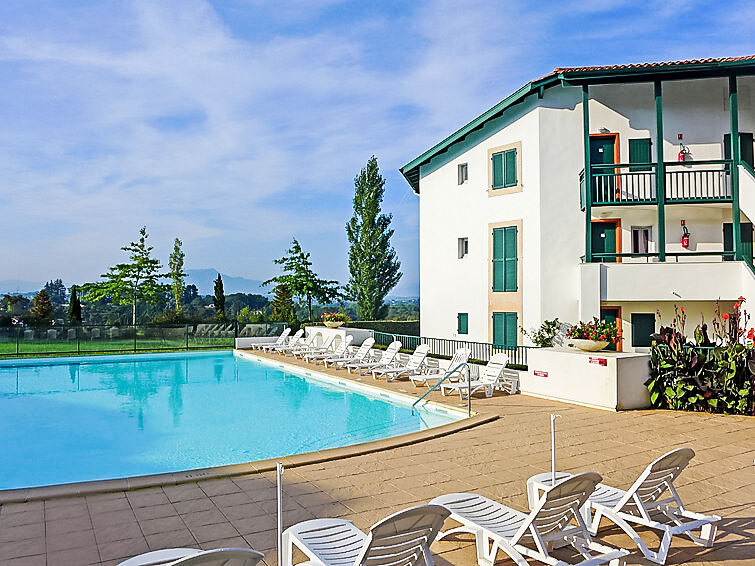 Arcangues 7 km van Bidart: Residentie "Les Terrasses d'Arcangues". In het centrum van Arcangues, drukke ligging, 8 km van zee, 8 km van het strand, aan de golfbaan. Voor medegebruik: openluchtzwembad (200 m2, 80 - 170 cm diepte, seizoensgebonden beschikbaarheid: 15.Jun. - 01.Okt.). Kinderzwembad, tafeltennis, terras. In het huis: droogruimte. Levensmiddelenwinkel 100 m, supermarkt 6 km, restaurant 50 m, bar 200 m, café 50 m, voetgangersgebied 150 m, bushalte "Arcangues Bourg" 500 m, treinstation "Biarritz" 6 km, zandstrand "Milady" 8 km. Golfterrein (18 holes) 50 m, surfschool 8 km. Attracties in de buurt: Golf d'Arcangues 50 m, Cité de l'Océan 7 km, Aquarium de Biarritz 8.5 km, Phare de Biarritz 9 km. Wandelgebied La Rhune 36 km. Geen lift. De sleuteloverdracht vindt plaats bij het agentschap Interhome in Bidart, 8 km. Vergelijkbare accommodaties kunnen worden geboekt.