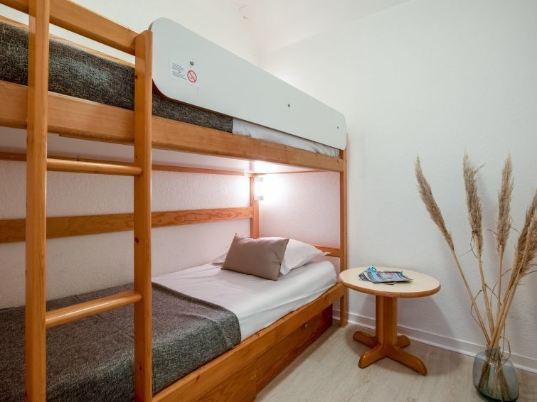 Studio 1-kamer 31 m2 op de 3e verdieping. Mooi ingericht: cabine met 1 x 2 stapelbedden (90 cm, lengte 190 cm). Woon-/eetkamer met 1 2-pers divanbed (1 x 140 cm, lengte 190 cm), TV (Flatscreen TV). Uitgang naar het terras, op het zuiden. Kookhoek (afwasmachine, 2 keramische glas kookplaten, elektrische koffiemachine, combimagnetron). Douche/WC. Elektrische verwarming. Klein terras 6 m2. Terrasmeubelen. Uitzicht op het landschap. Ter beschikking: Internet (WiFi, gratis). Rookmelders. In plaats van een afgesloten slaapkamer bevinden sommige slaapgedeeltes zich in een open ruimte (galerij, nis, etc.). 560340007018B