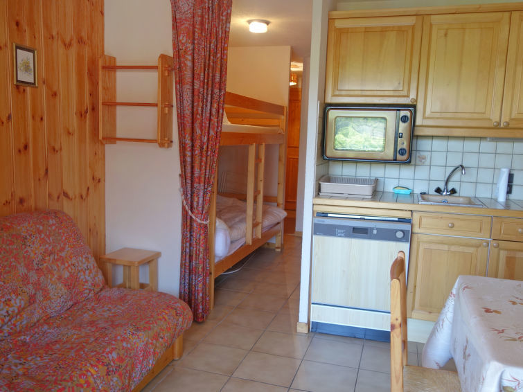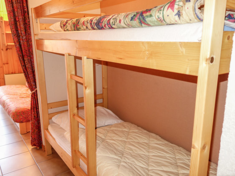 "Isabella", appartement 2-kamers 31 m2 op de 1e verdieping. Woon-/eetkamer met TV en Flatscreen TV. Uitgang naar het balkon. 1 kamer met 1 2-pers bed (130 cm). Slaapnis met 1 x 2 stapelbedden (80 cm). Kookhoek (4-pits kookplaat, mini-oven, afwasmachine, broodrooster, waterkoker, elektrische koffiemachine) met eettafel. Badkamer, aparte WC. Elektrische verwarming. Ter beschikking: Internet (WiFi, extra). Niet rokers woning. TV alleen FR. Rookmelders. In plaats van een afgesloten slaapkamer bevinden sommige slaapgedeeltes zich in een open ruimte (galerij, nis, etc.).
