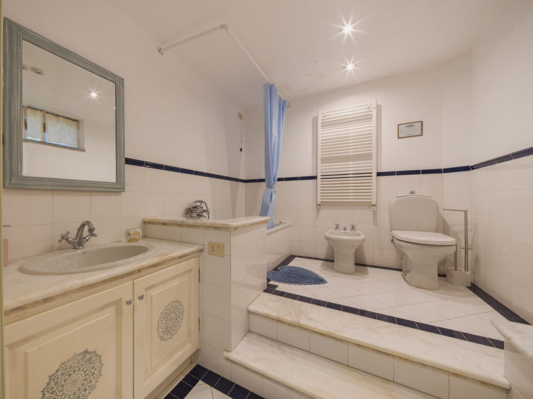 Huis 6-kamers 200 m2 op 3 verdiepingen. Ruim, mooi en gezellig ingericht: woonkamer met TV (Flatscreen TV). Uitgang naar de veranda. Groot keuken (oven, afwasmachine, 4 kookpitten (vlammen), broodrooster, waterkoker, magnetron, elektrische koffiemachine) met eettafel en air-conditioning. Uitgang naar de tuin. Douche/WC. Gas-verwarming, air-conditioning. Souterrain: 1 2-pers. kamer met air-conditioning. 1 kamer met 2 bedden en air-conditioning. Bad/bidet/WC. Bovenverdieping: 1 2-pers. kamer. 2 kamers, elke kamer heeft 2 bedden. Bad/bidet/WC. Terrasmeubelen, barbecue (verrijdbaar), ligstoelen (6). Ter beschikking: wasmachine, strijkijzer, klamboe, kinderstoel, kinderbed tot 2 jaar, haardroger. Internet (WiFi). Parkeerplaats (omheind, 5 Auto's). Rookvrij huis. Maximaal 1 huisdier/hond toegestaan. Rookmelders, brandblusser. IT046005C2XRJSAU8H