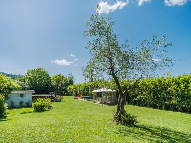 Capezzano 4 km van Camaiore: Moderne, mooi eengezinswoning "Il Casale", omgeven door weiden. 500 m van het centrum van Capezzano, 5 km van het centrum van Lido di Camaiore, 20 km van het centrum van Lucca, centrale, zonnige ligging, 5 km van zee, 5 km van het strand, aan een doodlopende weg, aan een weg, te midden van groen. Voor alleengebruik: tuin 1.500 m2 (omheind) met gazon, openluchtzwembad (verhoogd) (6 x 3 m, 100 cm diepte, seizoensgebonden beschikbaarheid: 01.Mei. - 04.Okt.). Buitendouche, patio, tuinmeubelen, barbecue, parkeerplaats (voor 5 auto's) op het terrein. Levensmiddelenwinkel 500 m, supermarkt 1 km, restaurant 1 km, bar 1 km, bushalte 500 m, treinstation "Viareggio" 6 km, zandstrand 5 km. Attracties in de buurt: Camaiore 5 km, Forte dei Marmi 11 km, Pietrasanta 5 km, Marina di Pietrasanta 9 km, Pisa 46 km, Carrara cave Fantiscritti 44 km. Bekende meren kunnen gemakkelijk worden bereikt: Torre del Lago 22 km, Lago di Massaciuccoli 16 km. Wandelgebied Antro del Corchia Levigliani 32 km. Auto noodzakelijk. De eigenaar accepteert geen jeugdgroepen.