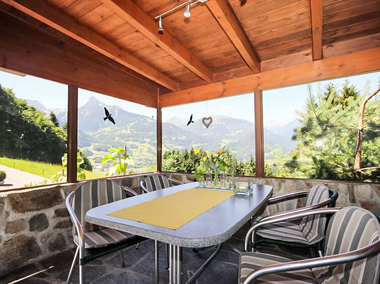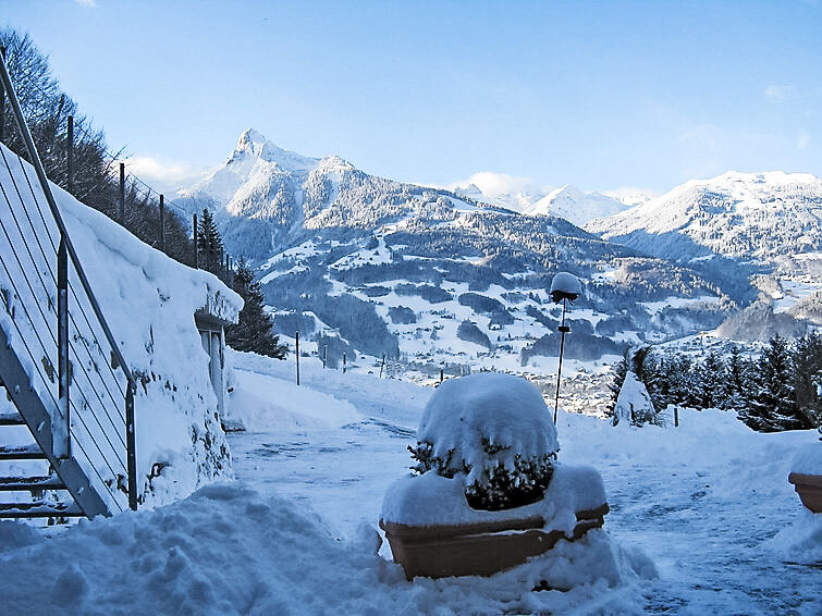 Appartement 3-kamers 68 m2, op de begane grond. Gezellig ingericht: woonkamer met eettafel en Sat-TV. Uitgang naar het terras. 1 2-pers. kamer. 1 kamer met 2 bedden. Open keuken (oven, afwasmachine, 4 keramische glas kookplaten). Douche/WC, aparte WC, dubbele wastafels. Terras overdekt, zithoek in de tuin. Terrasmeubelen, ligstoelen (4). Zeer mooi panoramazicht op de bergen, het dal en de skipiste. Ter beschikking: haardroger. Internet (Internet (WiFi), gratis). Niet rokers woning.