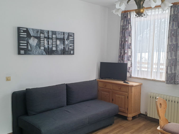 Appartement 3-kamers 65 m2, op de begane grond. Comfortabel en gezellig ingericht: hal. Groot woon-/eetkamer met 1 2-pers divanbed, eethoek en Sat-TV (Flatscreen TV). Uitgang naar het terras. 1 kamer met 1 x 2 stapelbedden. 1 2-pers. kamer. Open keuken (oven, afwasmachine, 4 keramische glas kookplaten, magnetron). Douche/WC. Terras, groot tuin 180 m2. Terrasmeubelen, barbecue. Uitzicht op de bergen en het landschap. Ter beschikking: Internet (WiFi). Parkeerplaats (1 Auto). Geschikt voor families. Niet rokers woning. 1 huisdier/hond toegestaan. 50425-000005-2020