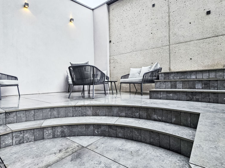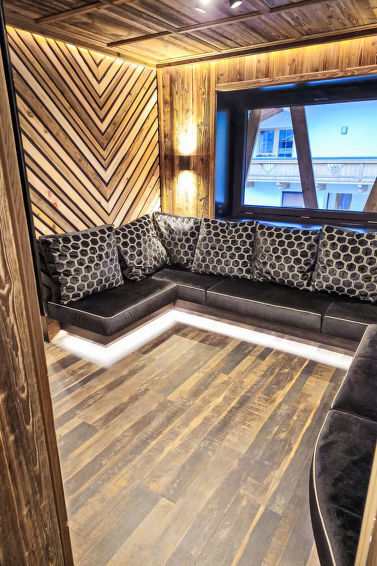Chalet 10-kamers 350 m2 op 5 verdiepingen. Luxueus en smaakvol ingericht: hal. 2 2-pers. kamers. 2 kamers, elke kamer heeft 1 2-pers divanbed, 1 2-pers bed en douche/WC. Douche/WC. Souterrain: douche, aparte WC, Sauna. Bovenverdieping: hal. 2 kamers, elke kamer heeft 1 2-pers divanbed, 1 2-pers bed en douche/WC. 2 2-pers. kamers. Douche/WC. 2e Verdieping: groot woon-/eetkamer met open haard, eettafel en Sat-TV (Flatscreen TV). Woon-/slaapkamer. Open keuken (oven, afwasmachine, 4 keramische glas kookplaten, magnetron, elektrische koffiemachine). Vloerverwarming. Parketvloeren. Balkon, groot terras 42 m2. Terrasmeubelen, barbecue, ligstoelen. Zeer mooi uitzicht op het landschap. Ter beschikking: wasmachine, droger, haardroger. Niet rokers woning. Maximaal 1 huisdier/hond toegestaan. Het luxe chalet beschikt over een eigen wellnessruimte met hydromassagebad en ontspanningsruimte.