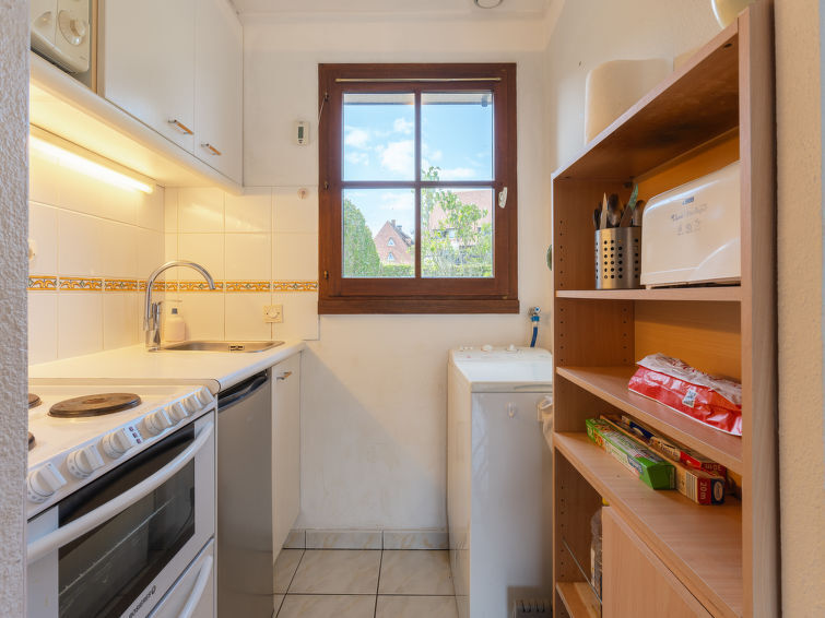 Huis in een rij 3-kamers 45 m2. Woon-/eetkamer met TV (Flatscreen TV). Uitgang naar de tuin, naar het terras. Open keuken (4-pits kookplaat, mini-oven, afwasmachine, broodrooster, waterkoker, elektrische koffiemachine, pads voor de koffiemachine (NESPRESSO) extra). Bovenverdieping: 1 kamer met 1 2-pers divanbed (140 cm, lengte 190 cm). 1 kamer met 1 2-pers bed (140 cm, lengte 190 cm). Douche, aparte WC. Elektrische verwarming. Terras 10 m2, tuin 80 m2. Terrasmeubelen, ligstoelen (1). Ter beschikking: wasmachine. Internet (WiFi, extra). Parkeerplaats nr. 106. Rookmelders. Aanbod door een particulier volgens art. 155, IV van CGI. 14640590099AB