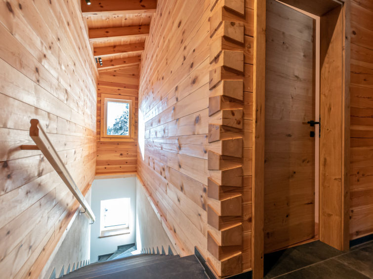 "Ferienwohnung Alpenauszeit", appartement 3-kamers 135 m2. Ruim en licht, smaakvol en gezellig ingericht: hal. 1 2-pers. kamer met douche/WC, Sat-TV, internationale TV-zenders en Flatscreen TV. Groot woonkeuken (oven, afwasmachine, 4 keramische glas kookplaten, broodrooster, waterkoker, magnetron, diepvriezer, elektrische koffiemachine) met eethoek, Sat-TV, internationale TV-zenders en Flatscreen TV. Aparte WC. Bovenverdieping: 1 2-pers. kamer met douche/WC, Sat-TV, internationale TV-zenders en Flatscreen TV. Houten vloeren, natuurstenen vloeren. Groot balkon. Balkonmeubilair. Zeer mooi panoramazicht op de bergen en het landschap. Ter beschikking: strijkijzer, kinderstoel, kinderbed tot 2 jaar, haardroger. Internet (Internet (WiFi), gratis). Rookvrij huis. Rookmelders, brandblusser. 50417-000481-2022